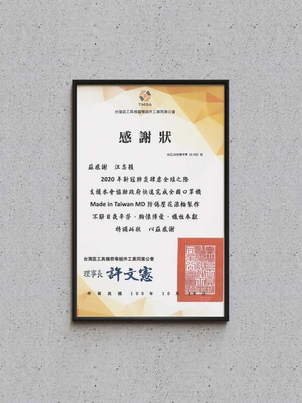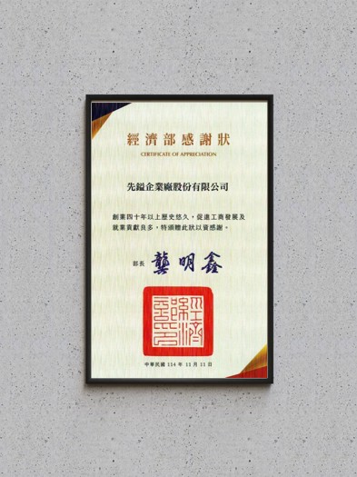Certificate of Appreciation by the Ministry of Economic Affairs
