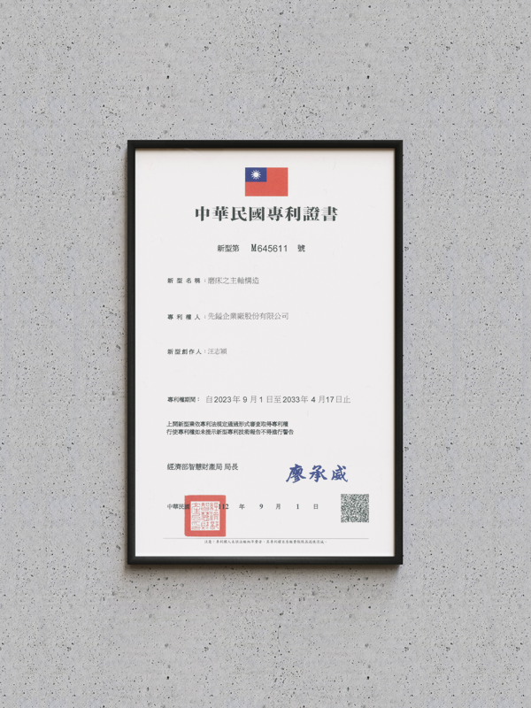 M645611 Patent:Structure of a Grinding Machine Spindle