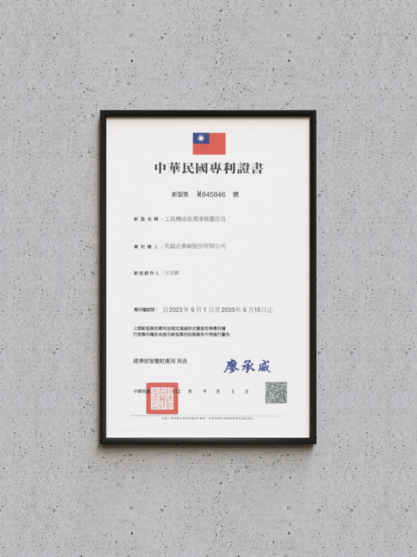 M645846 Patent:Title: Improvements to the Oil-Air Lubrication Device for Machine Tools