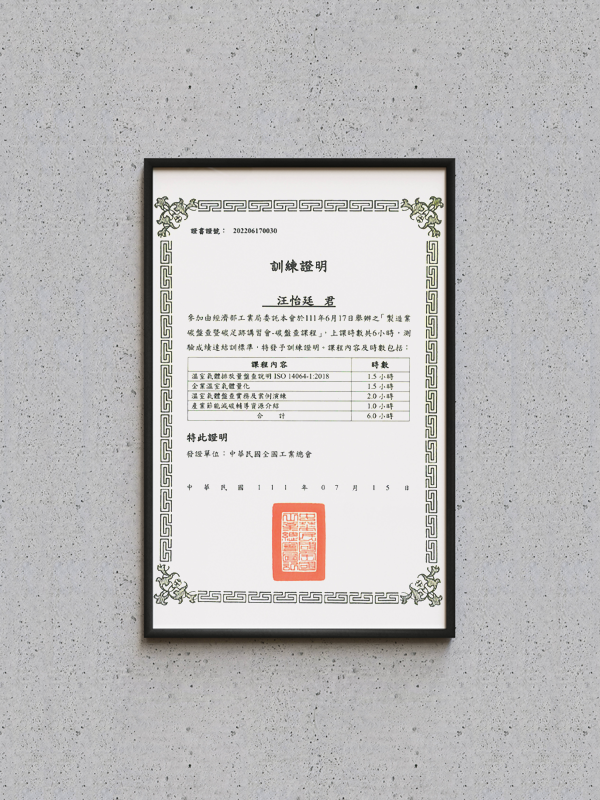 ISO 14064-1:2018 Certificate of Completion for Carbon Inventory Training