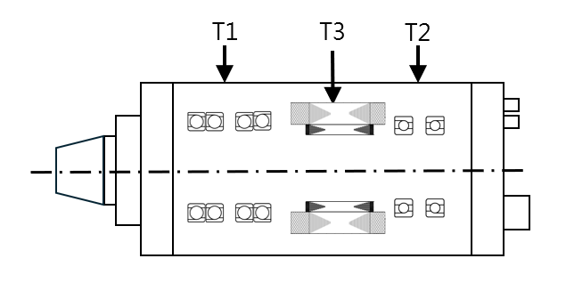 To ensure long-term spindle stability and consistent cutting precision, accurate thermal growth control and automatic heat compensation mechanisms are essential. Key monitoring points typically include Fixed Bearing End (T1), Floating Bearing End (T2) and Spindle Motor (T3) as shown in Fig. 1.