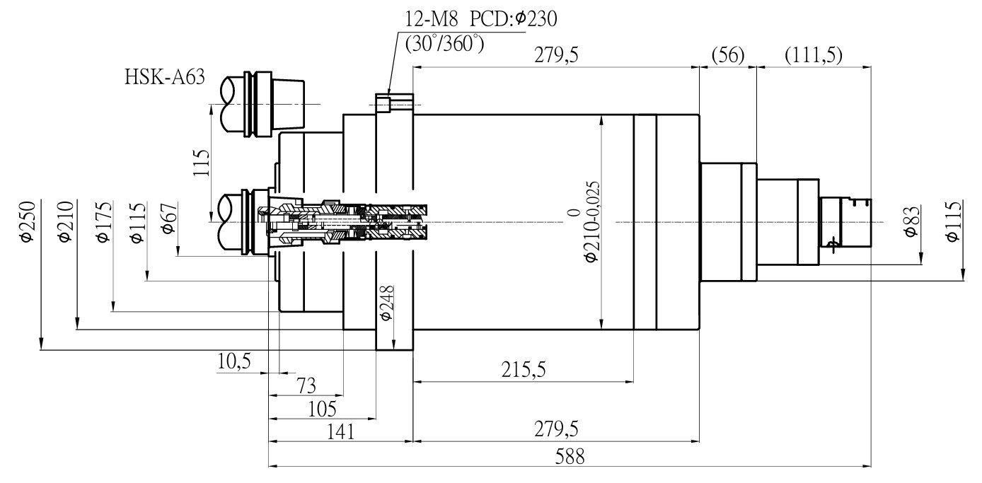HSK-A63 Ultra-high Speed Milling Spindle SY-210-30K-41kW