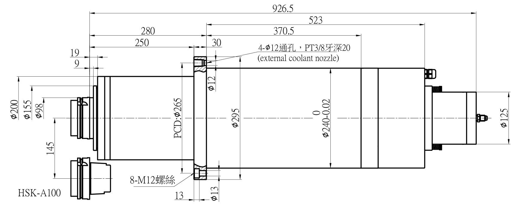 | Housing Diameter (mm) | ϕ240h6 |