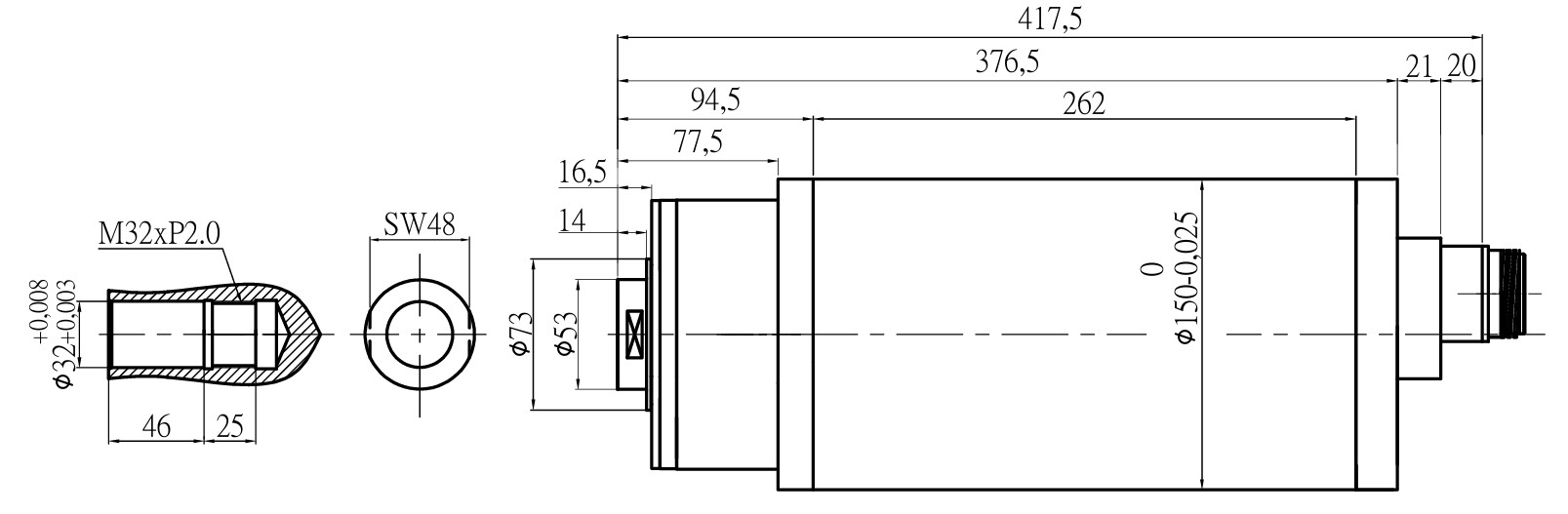 | Housing Diameter (mm) | ϕ150h6 |